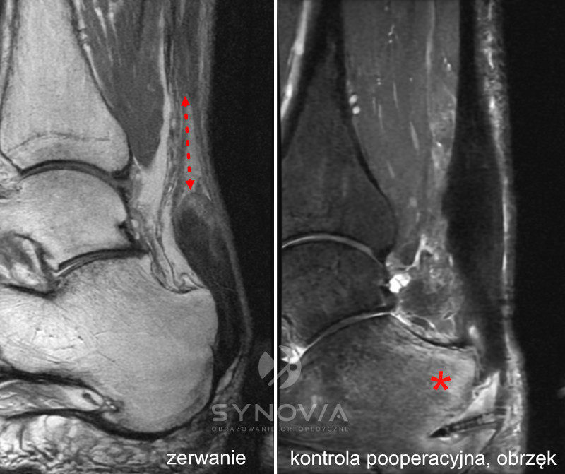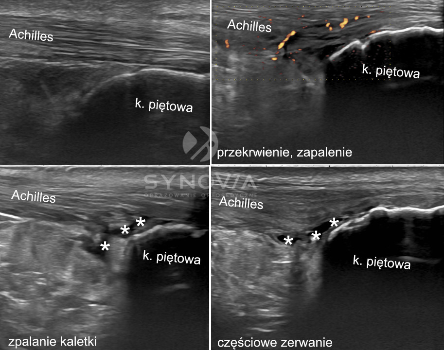 Co widać: Stopień uszkodzenia ścięgna, obrzęk w kości piętowej, stan tkanek okolicznych, możłiwy dokładny monitoring gojenia, w tym gojenia pooperacyjnego.